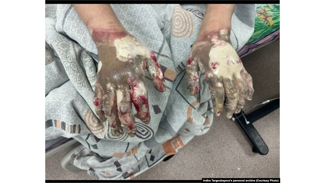 Предупреждение: на фотографии зафиксированы ожоги Индиры после покушения со стороны Боприева. Эти кадры могут шокировать. Настоящее Время публикует их с разрешения Индиры